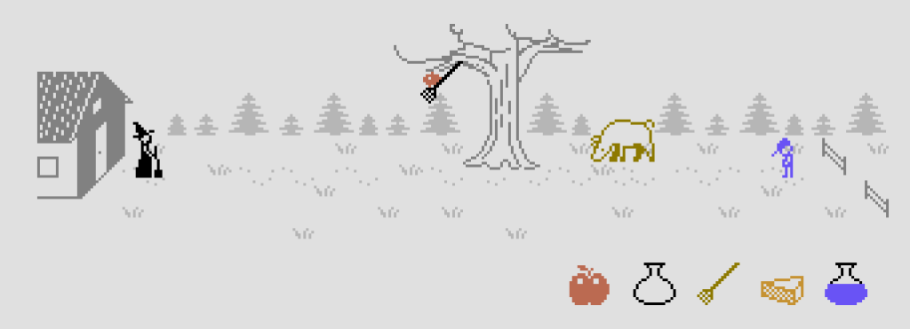 This is a simple point and click game supporting a 1351 or compatible mouse. You have to provide cake for the annoying kid to get out of your yard
